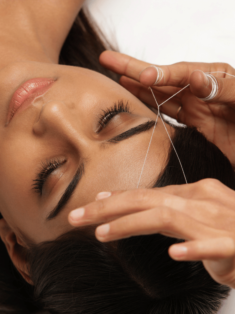 Threading is an ancient hair-removal technique that expertly sculpts the brows by removing each hair from the follicle, creating a clean, defined line that can last for up to six weeks. Using a delicate cotton thread twisted and rolled across the skin, unwanted hairs are lifted with precision, allowing for beautifully shaped brows that frame the eyes and elevate the entire face.